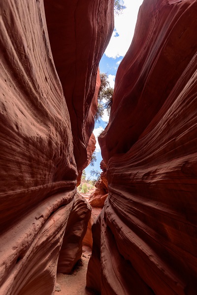 This Peekaboo Canyon is about 11 miles north of Kanab, Utah. The entrance is at the end of a sandy road. A 4WD vehicle is the vehicle of choice here.